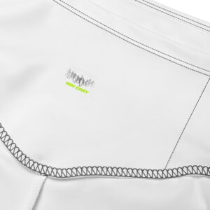 Please note: contact with rough surfaces should be avoided since that can pull out the white fibers in the fabric, damaging the shorts.