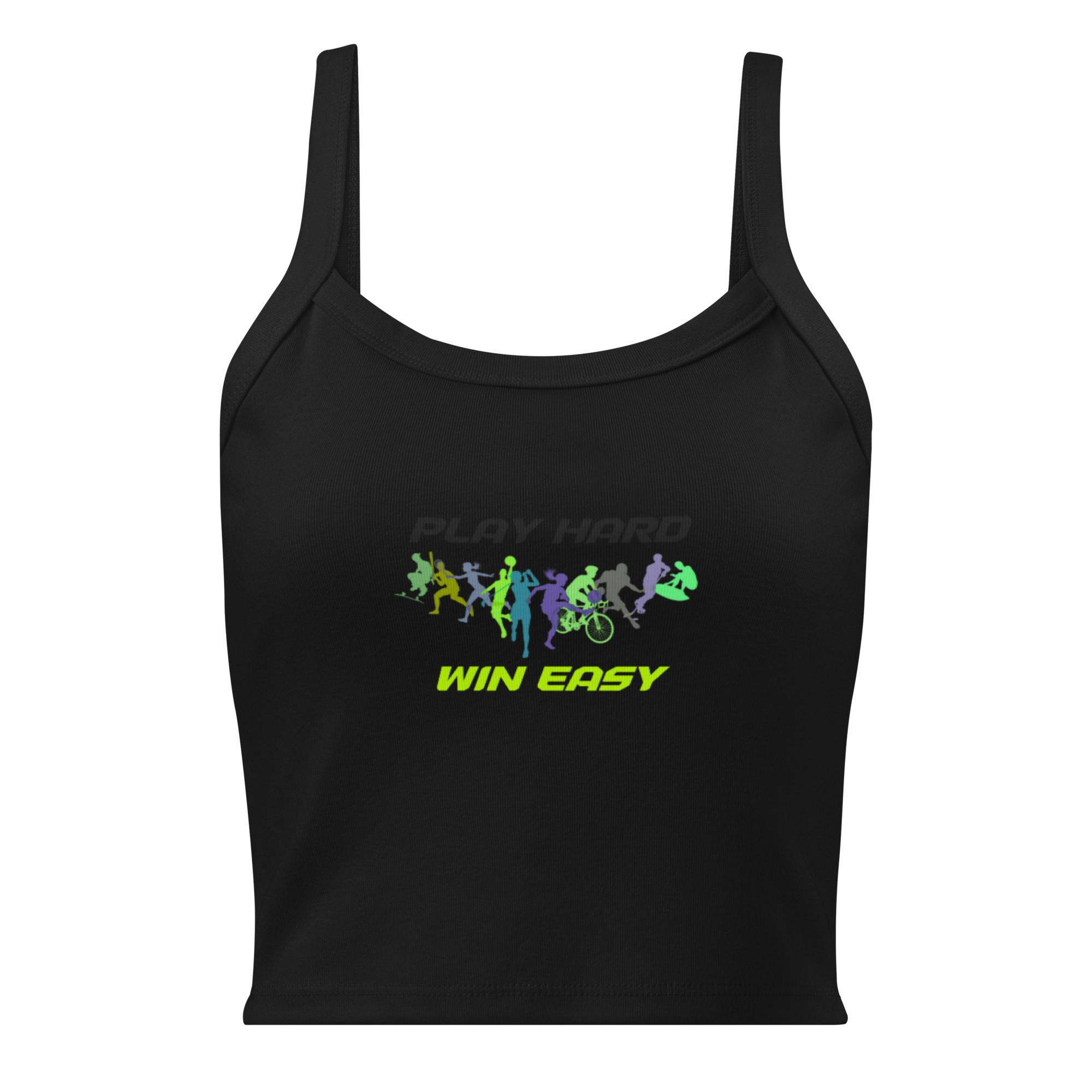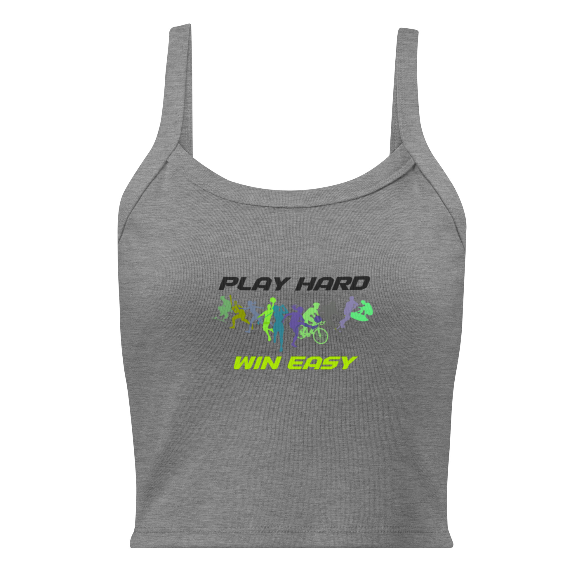 Women’s micro-rib tank top “PLAY HARD, WIN EASY”